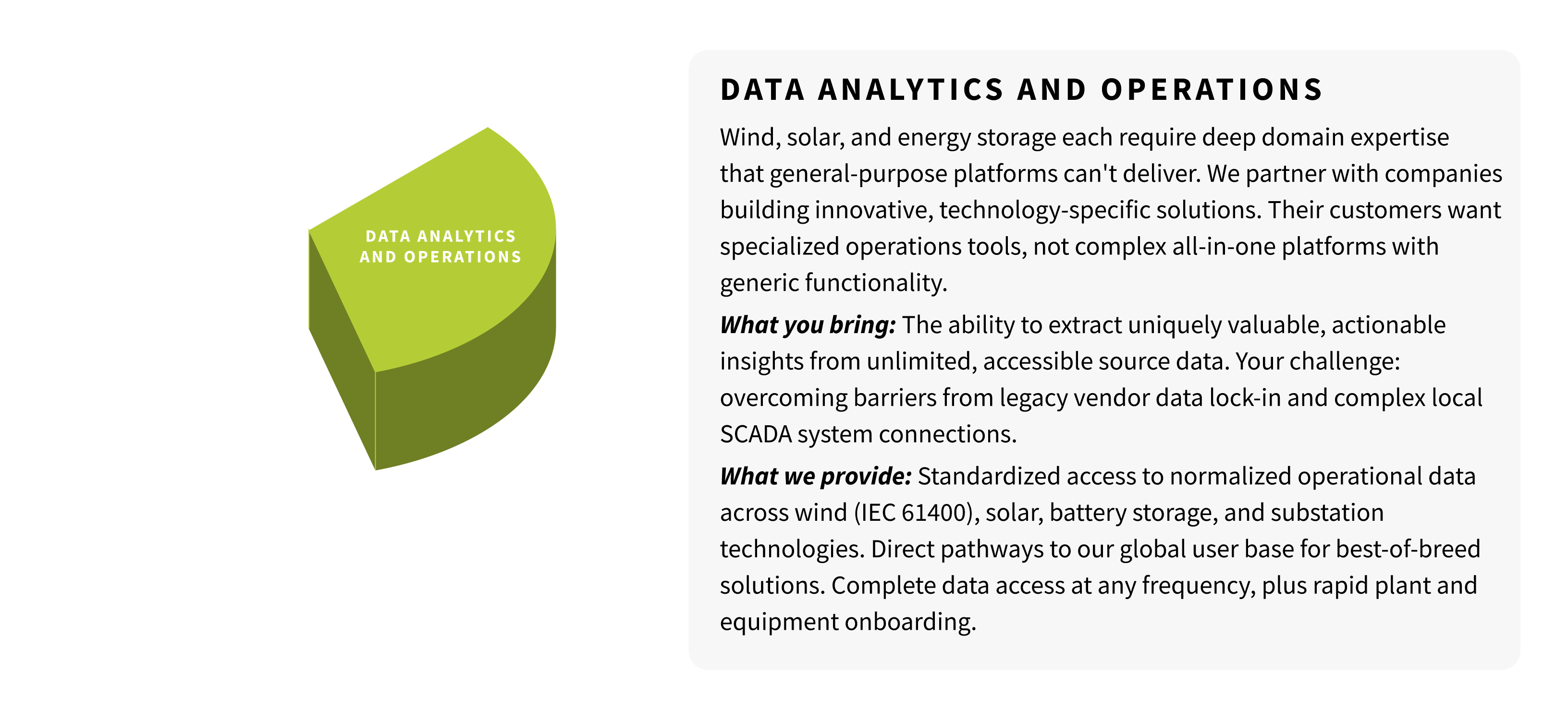 The renewable energy industry is moving toward a best-of-breed ecosystem model—the question is whether you'll lead the transformation or be left behind. If you're developing innovative solutions for renewable energy operations, or if you're an established provider ready to embrace the open ecosystem approach, we want to talk.